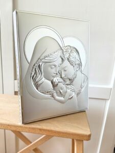 Obraz Świętej Rodziny srebrny nowoczesny Rozmiar: 22×26 cm, 26×32 cm, 32×39 cm!
