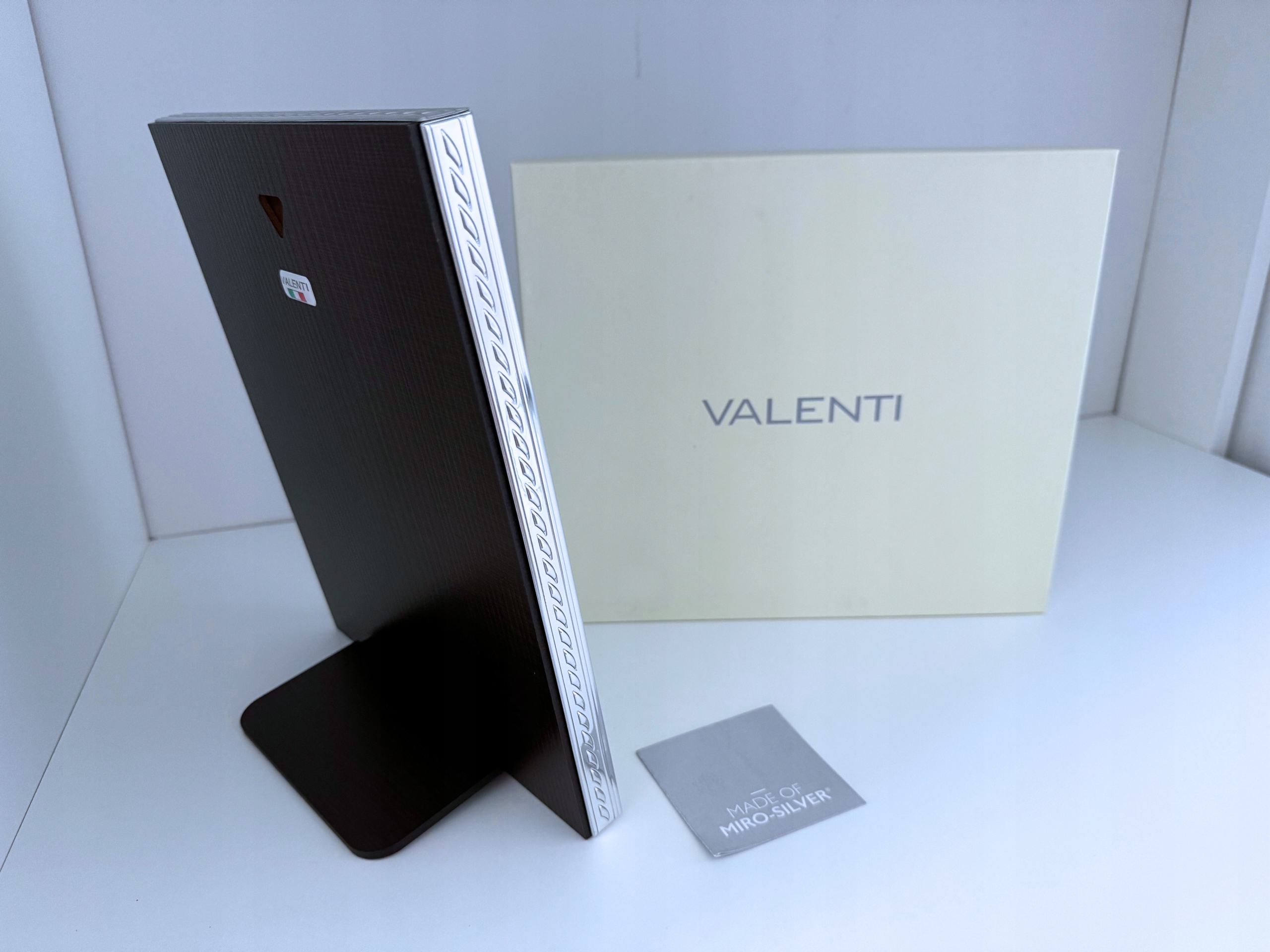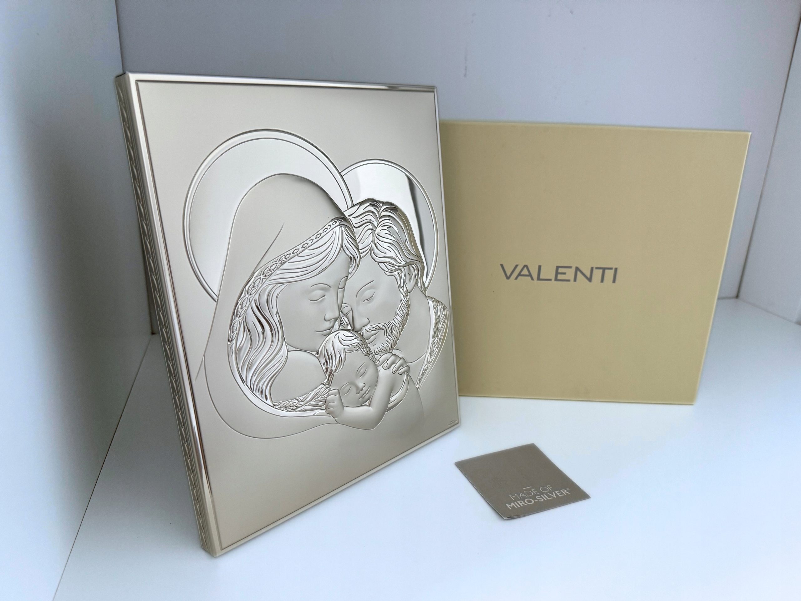 Obrazek wyprodukowany został przez firmę Valenti. Gwarantuje ona, iż przedmiot nabyty przez Państwa został wyprodukowany we Włoszech, z metalu pokrytego czystym srebrem w technologii PVD zgodnie z dekretem 206/2005 art.6. Dzięki temu jest odporniejszy na odkształcenia mechaniczne i śniedzenie, doskonale odbija światło, co podkreśla szlachetność srebra. Obrazek zabezpieczony jest warstwą lakieru, która chroni przed czynnikami zewnętrznymi. Wpływa to na bezproblemowe użytkowanie bez potrzeby częstego czyszczenia.