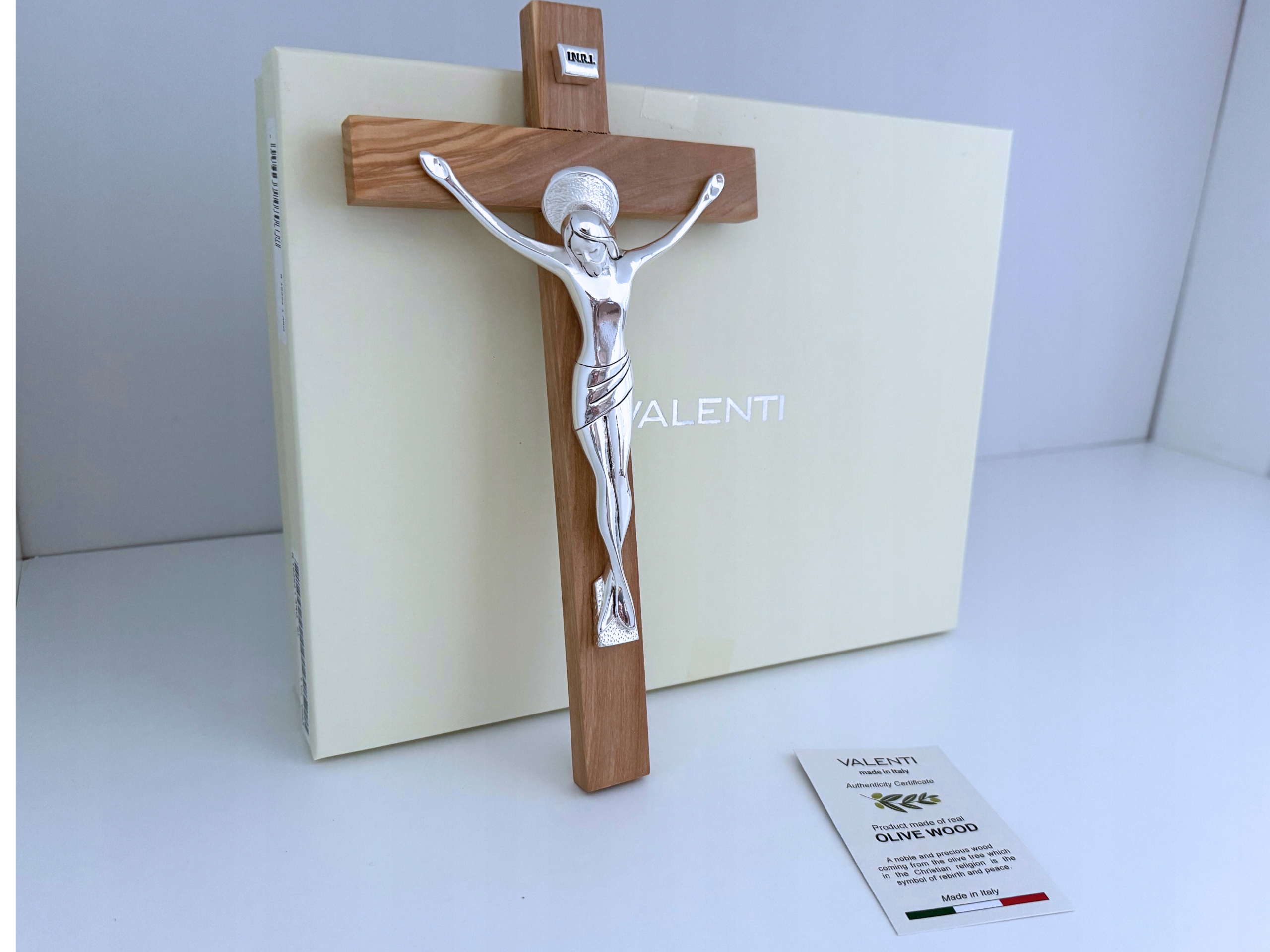 Krzyż z wizerunkiem Chrystusa wykonany jest z wysokiej jakości drzewa oliwnego. Ten wyjątkowy przedmiot wyróżnia się elegancją i dbałością o detale, co sprawia, że jest idealnym dodatkiem do każdego domu, kapliczki czy miejsca modlitwy.