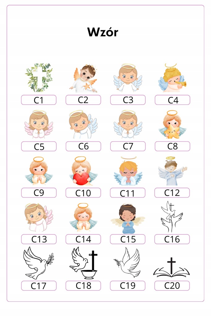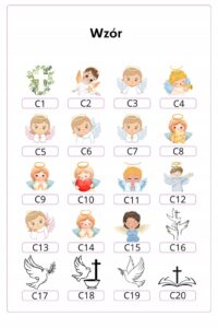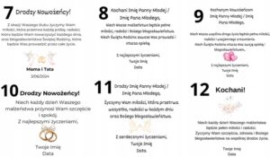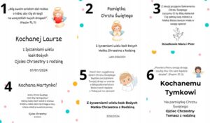 Proszę wybrać projekt od 1 do 12 oraz IMIĘ DZIECKA/ IMIONA PAŃSTWA MŁODYCH np. Martynce, OD KOGO PREZENT np. Ojciec Chrzestny, DATA I/LUB MIEJSCE np. Lublin, 07.05.2024 r.