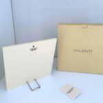 Znajdziesz też w nim oryginalną ulotkę producenta w języku włoskim i angielskim wraz z certyfikatem autentyczności oraz informację o sposobie pielęgnacji. Do czyszczenia należy używać jedynie miękkiej ściereczki bądź letniej wody. Nie wolno stosować żadnych środków czyszczących, również tych przeznaczonych do czyszczenia srebra.