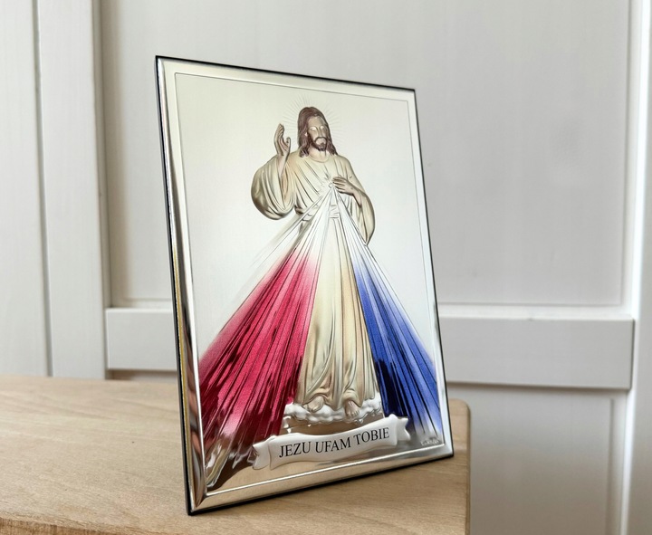 Napisz pierwszą opinię o „Srebrny obrazek kolor Jezus Miłosierny prezent rocznica Dedykacja gratis!”