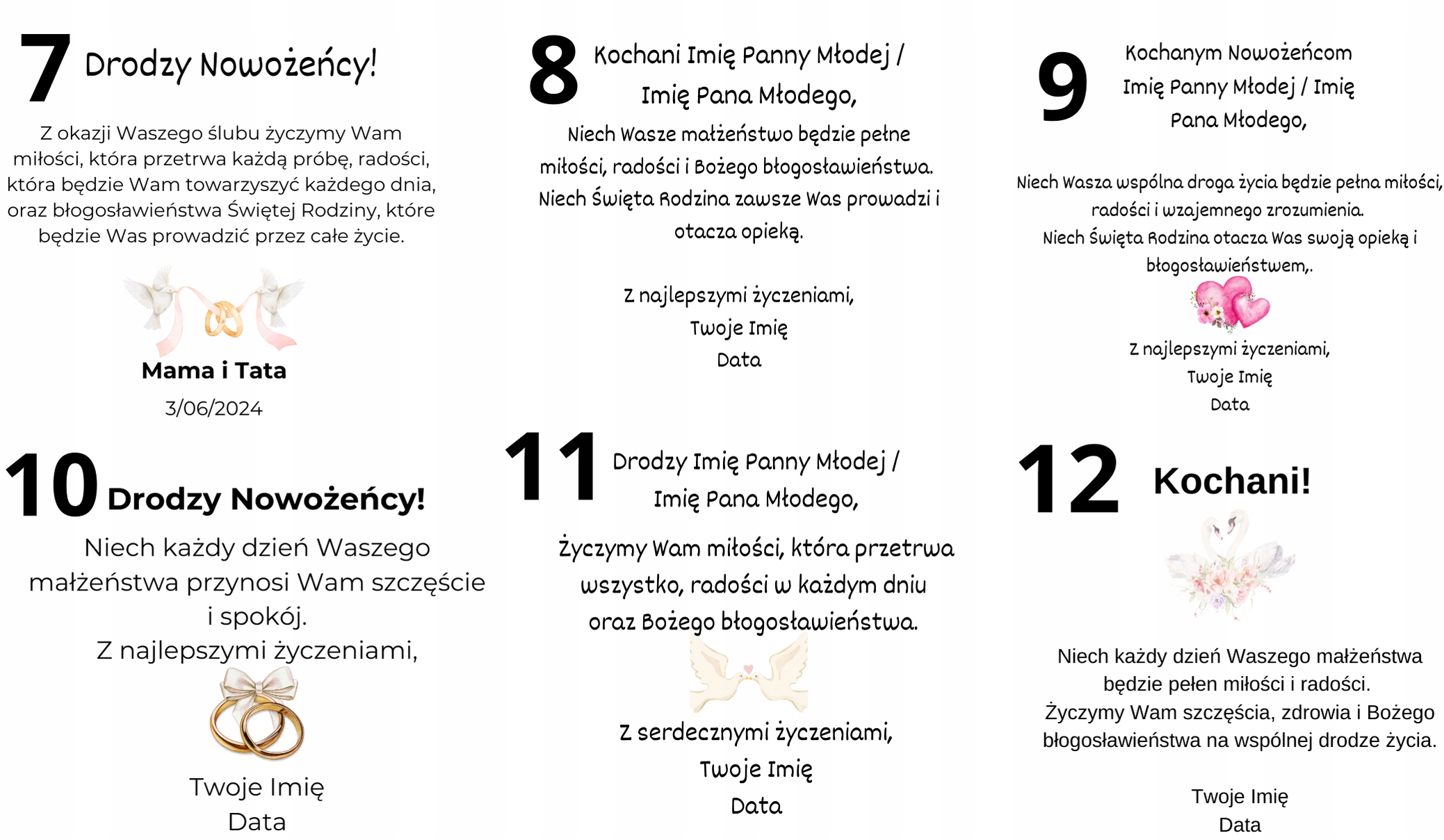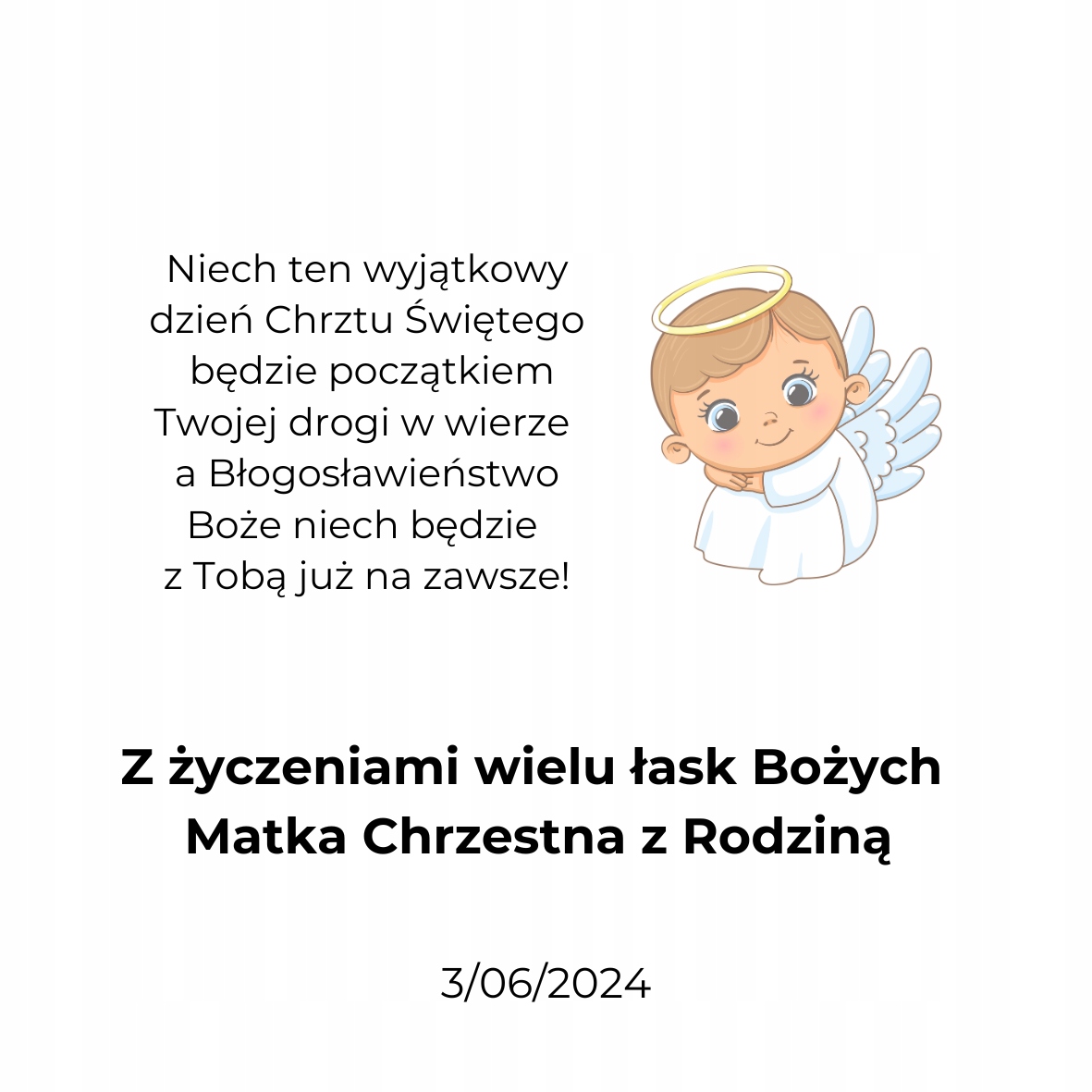 VII.          „Z okazji przyjęcia Sakramentu Chrztu Świętego życzymy Ci by Bóg obdarzał Cię pełnią swej miłości a Matka Boża zawsze miała w swojej opiece!”