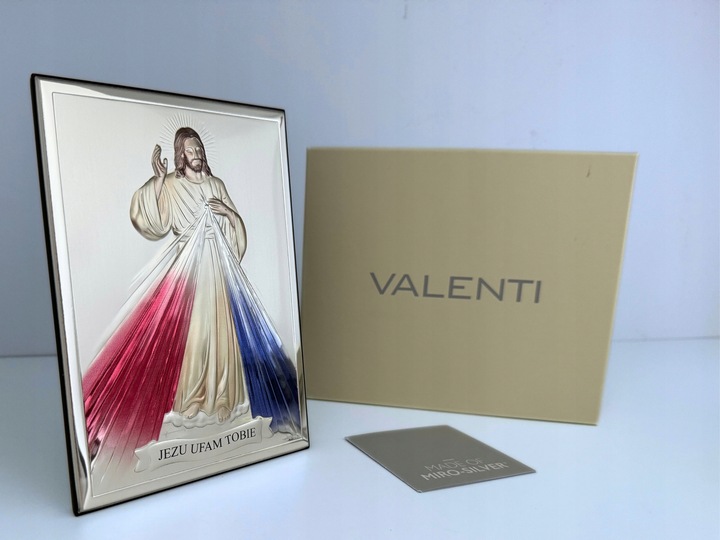 Srebrny obrazek Valenti Jezus Miłosierny „Jezu Ufam Tobie” 9x13cm