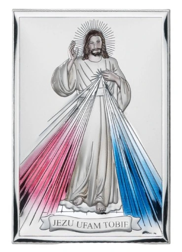 Srebrny obrazek kolor Jezus Miłosierny prezent rocznica Dedykacja gratis!